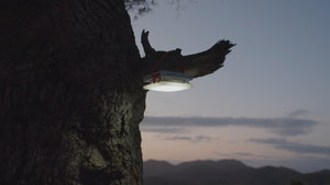 The underside of the light features an area light with multiple brightness modes including candle flicker mode and red light mode. Recharge with the sun via the solar panel or use the USB-C port.