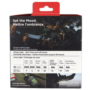 Add a soft touch of string light ambience to any atmosphere with this portable solar string light. The 40 lumen 10m LED string light puts off a warm white light with 4 modes: steady high, steady low, flashing fast, and flashing slow.