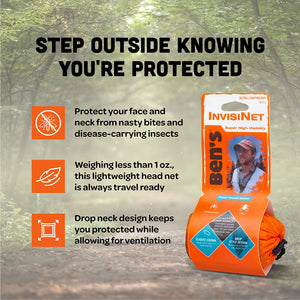 The Ben's InvisiNet Head Net, offers lightweight over-the-head protection with ultra high-visibility screening and protective design