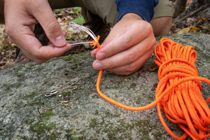 This cord is strong and the diameter is small enough to easily tie your gear to packs or racks and durable enough to take on any adventure. The nylon outer sheath provides a rugged protective layer for the ignitable waxed cotton inner core.