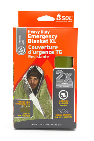 Wind & waterproof and 90% heat reflective, the Heavy Duty Emergency Blanket will keep you warm and dry and is tough enough to survive multiple adventures.