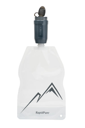 The RapidPure® Purifier + Multi-Use System is purification YOUR way. The POD housing slides over the POD purification cartridge and locks into place to create a 4-way multifunctional system. Attach to any standard 28mm bottle or use with the included soft bottle for filtered and purified water as you drink. Connect the included emergency straw for a pocket-sized, ultralight purifier. Hang the soft bottle from a tree to create your own gravity system or connect the system to your hydration pack for inline purification.
