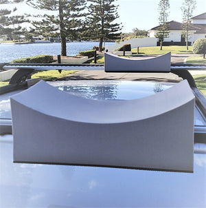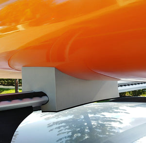Designed specifically to support and protect SLSA racing skis, ocean racing skis and sprint kayaks when transported on car roof racks. They can be quickly and easily attached to and removed from the roof rack bars, making them a valuable tool when car shuttling for those downwind ski sessions. When not in use, easily remove them to reduce wind drag and possibly improve your fuel efficiency (in comparison to permanently mounted kayak holders).